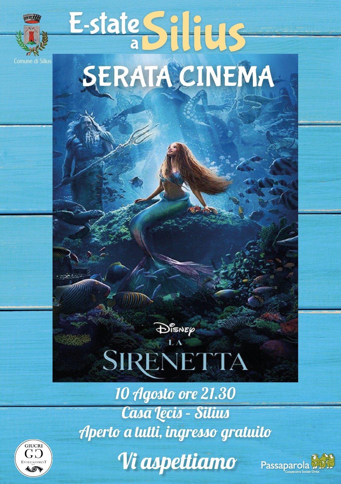 L’Amministrazione Comunale e la Cooperativa Sociale Passaparola sono lieti di invitarvi il 10 agosto alle ore 21.30 presso Casa Lecis per la visione del film “La Sirenetta”