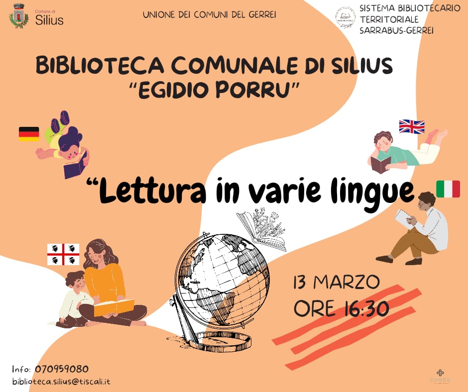 La Biblioteca Comunale "Egidio Porru" invita tutti gli interessati a prendere parte all'attività "Lettura in varie lingue il giorno" 13 marzo ore 16:30.