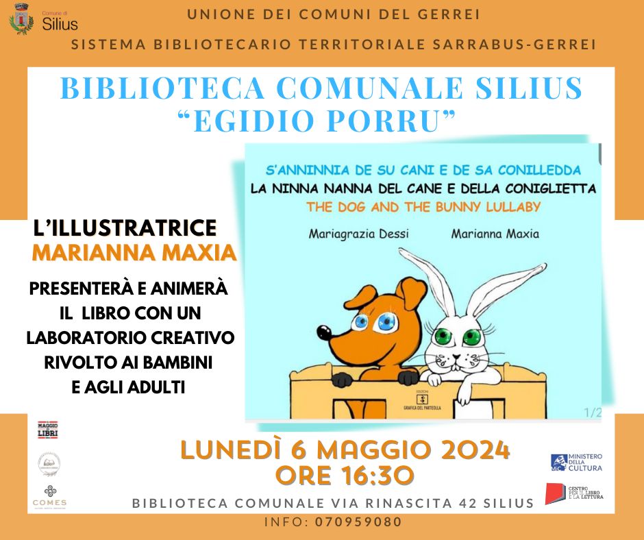 SI INVITANO TUTTI GLI INTERESSATI ALLA PRESENTAZIONE DEL LIBRO "LA NINNA NANNA DEL CANE E DELLA CONIGLIETTA" CHE SI TERRA' LUNEDI 06/05/2024, PRESSO LA BIBLIOTECA COMUNALE "E. PORRU", COME DA LOCANDINA ALLEGATA.