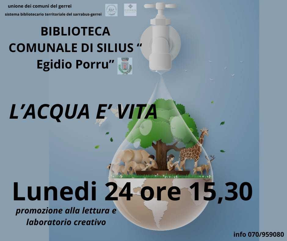 LA BIBLIOTECA COMUNALE REALIZZERA' UN'ATTIVITA' DI ANIMAZIONE ALLA LETTURA E LABORATORIO CREATIVO "L'ACQUA E' VITA"