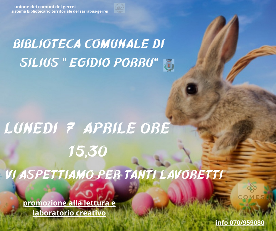 La Biblioteca Comunale "Egidio Porru" invita tutti gli interessati a partecipare alle attività di promozione alla lettura e laboratorio creativo in occasione della Pasqua.