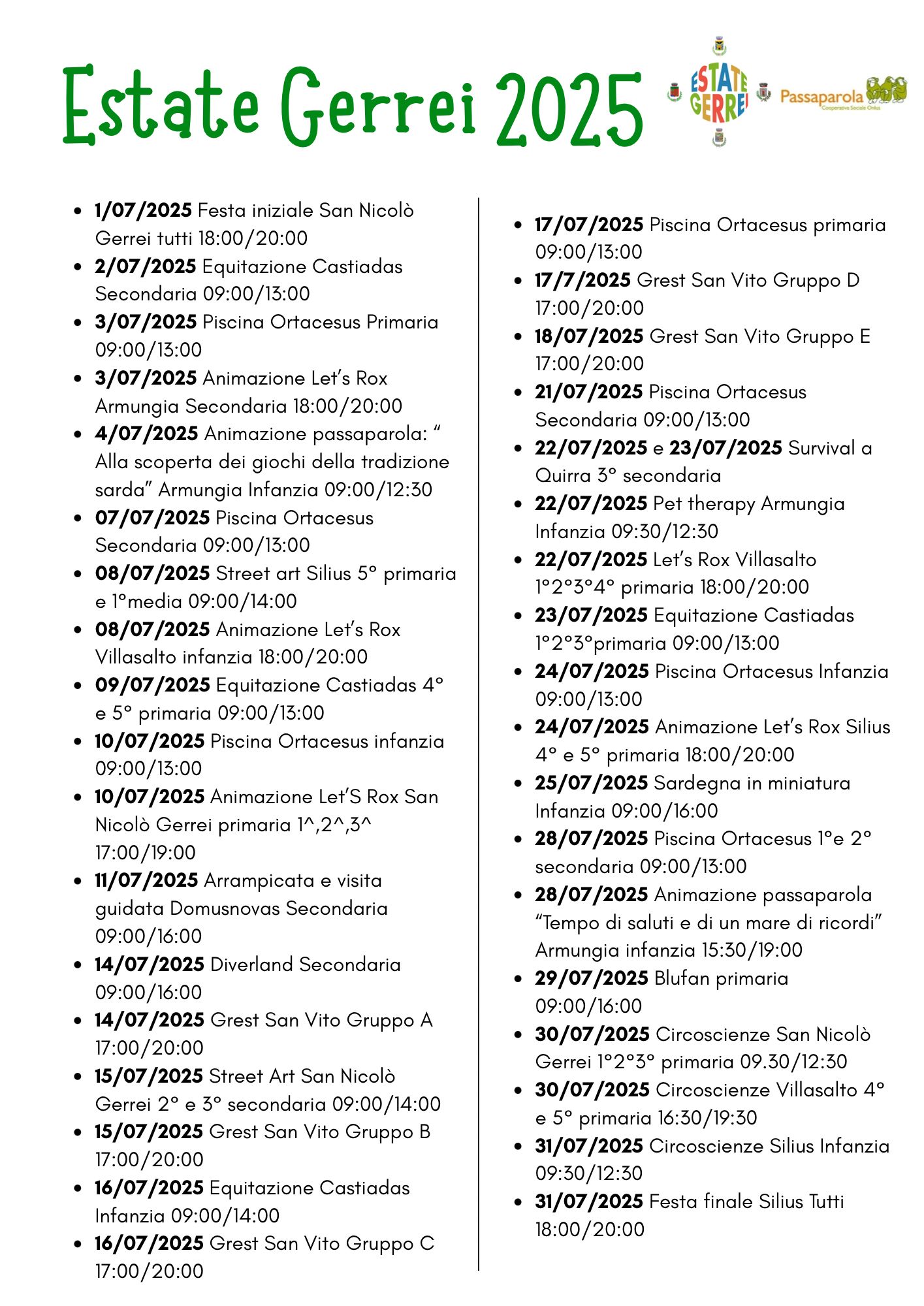 PROGRAMMA "ESTATE GERREI 2025". CALENDARIO ATTIVITA'