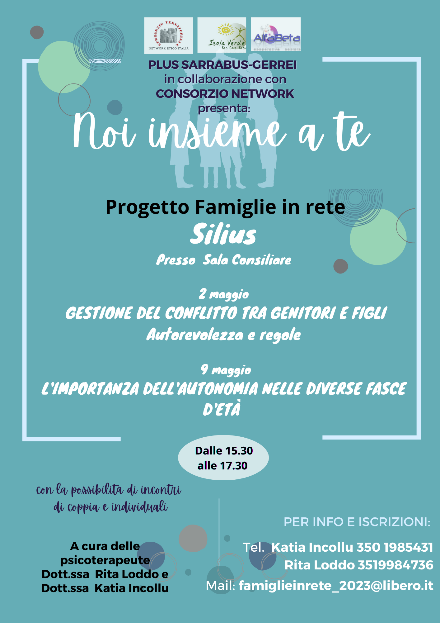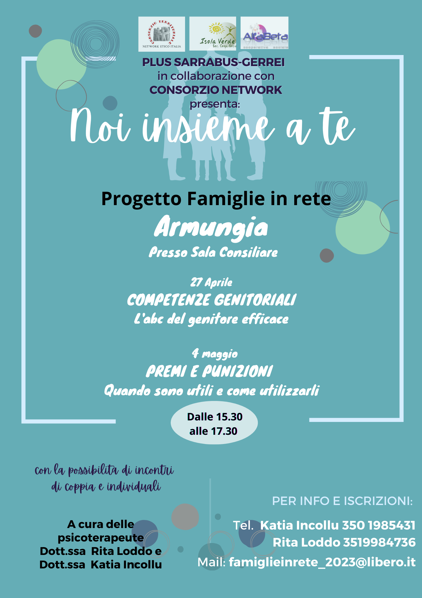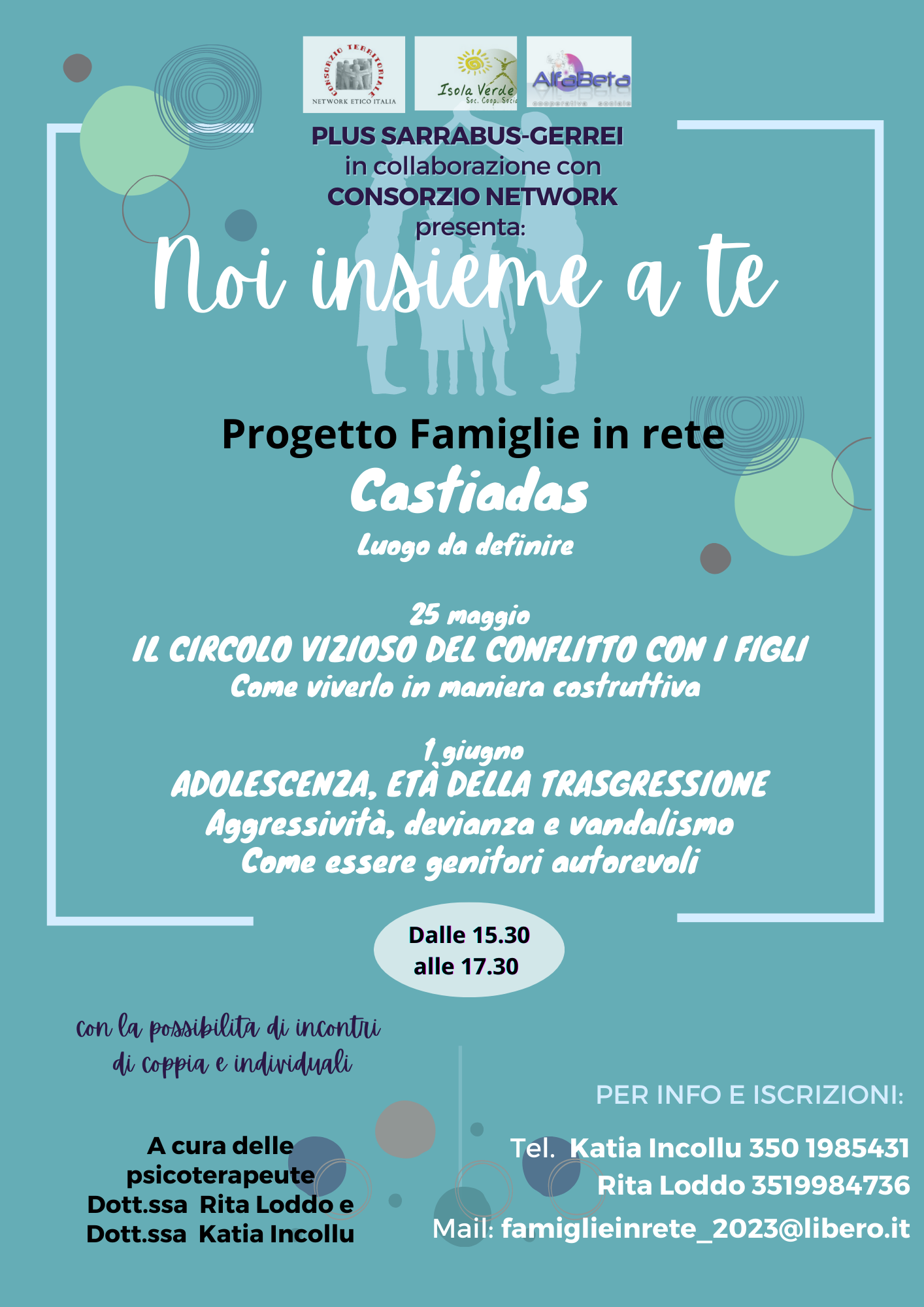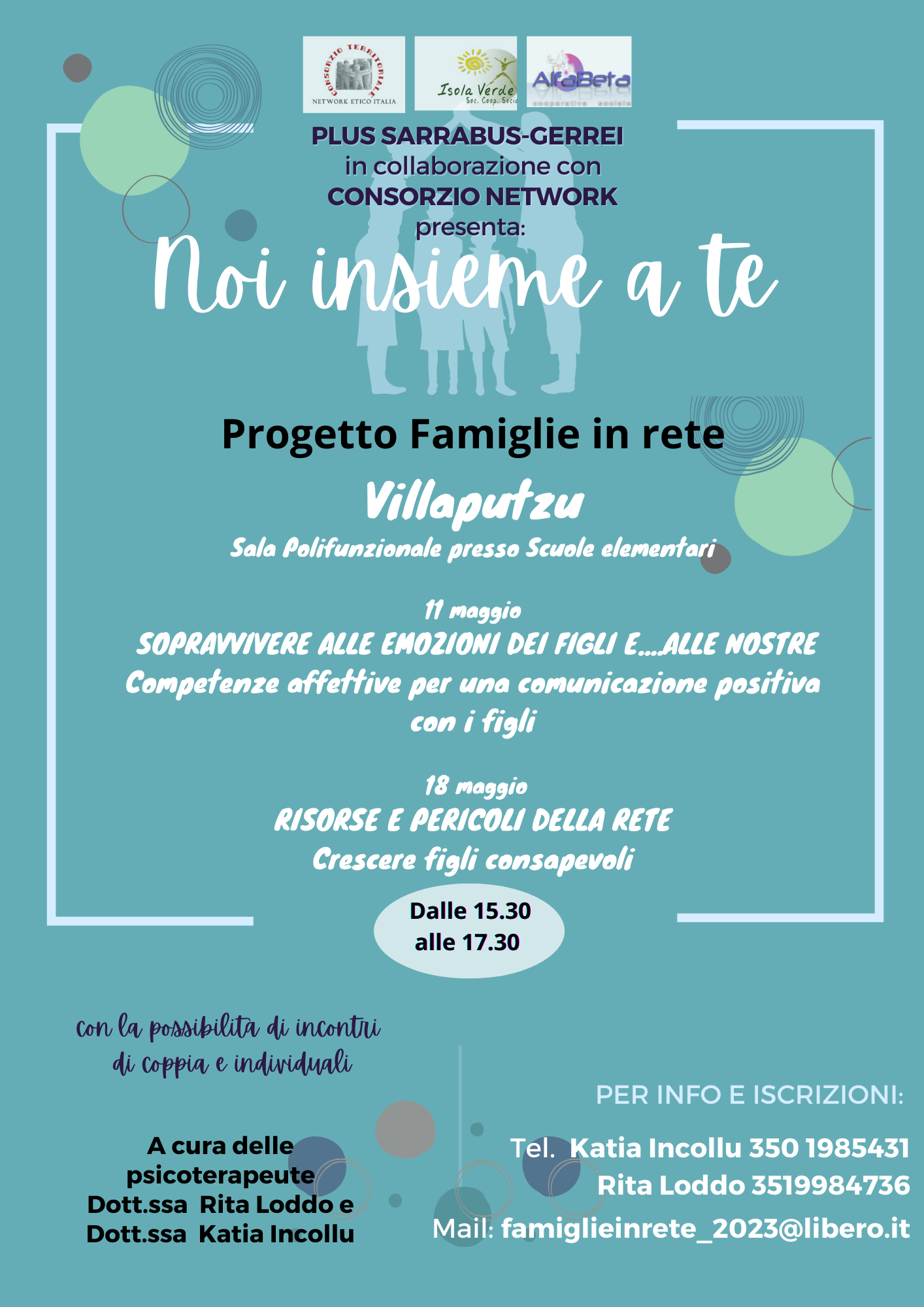 Si ricorda che nelle locandine sono indicati i numeri di telefono delle professioniste Psicoterapeute Dr.ssa Loddo e Dr.ssa Incollu, con le quali sarà possibile chiedere colloqui individuali in cui approfondire dubbi, perplessità ed eventuali problematiche personali.