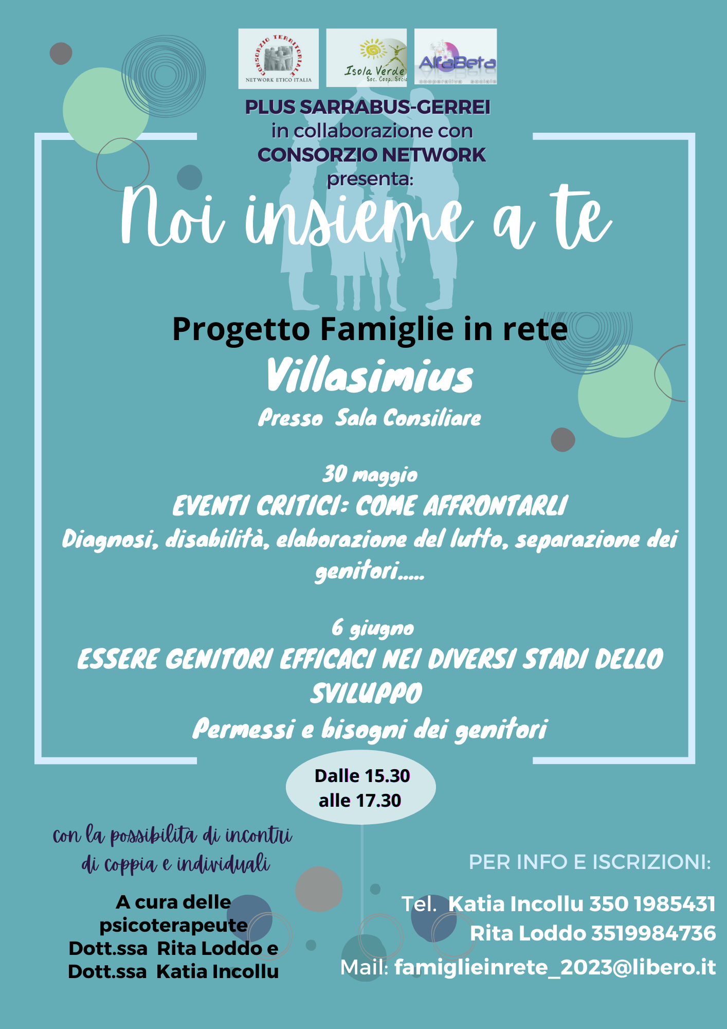 - la locandina degli incontri che si terranno a Villasimius il 30/05/2023 e il 06/06/2023